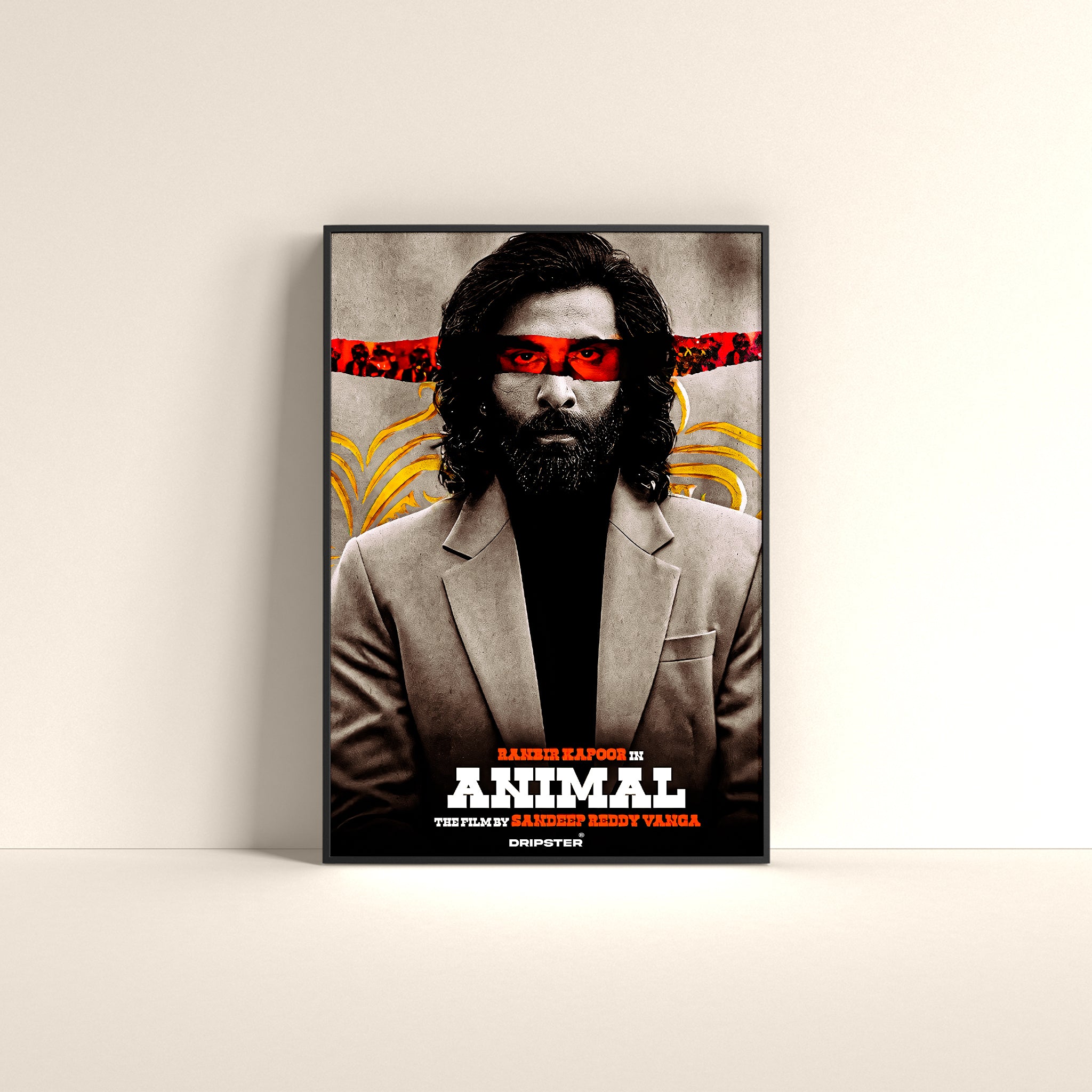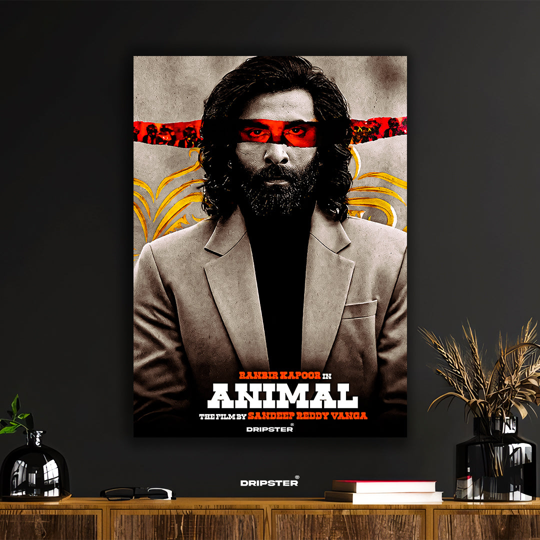 Bring home the intensity of "Animal" with this striking movie poster featuring Ranbir Kapoor. The design, with its raw aesthetic and a powerful depiction of the lead, captures the essence of the film's gritty and dramatic narrative. A must-have for fans of Bollywood cinema and those who appreciate impactful movie art.