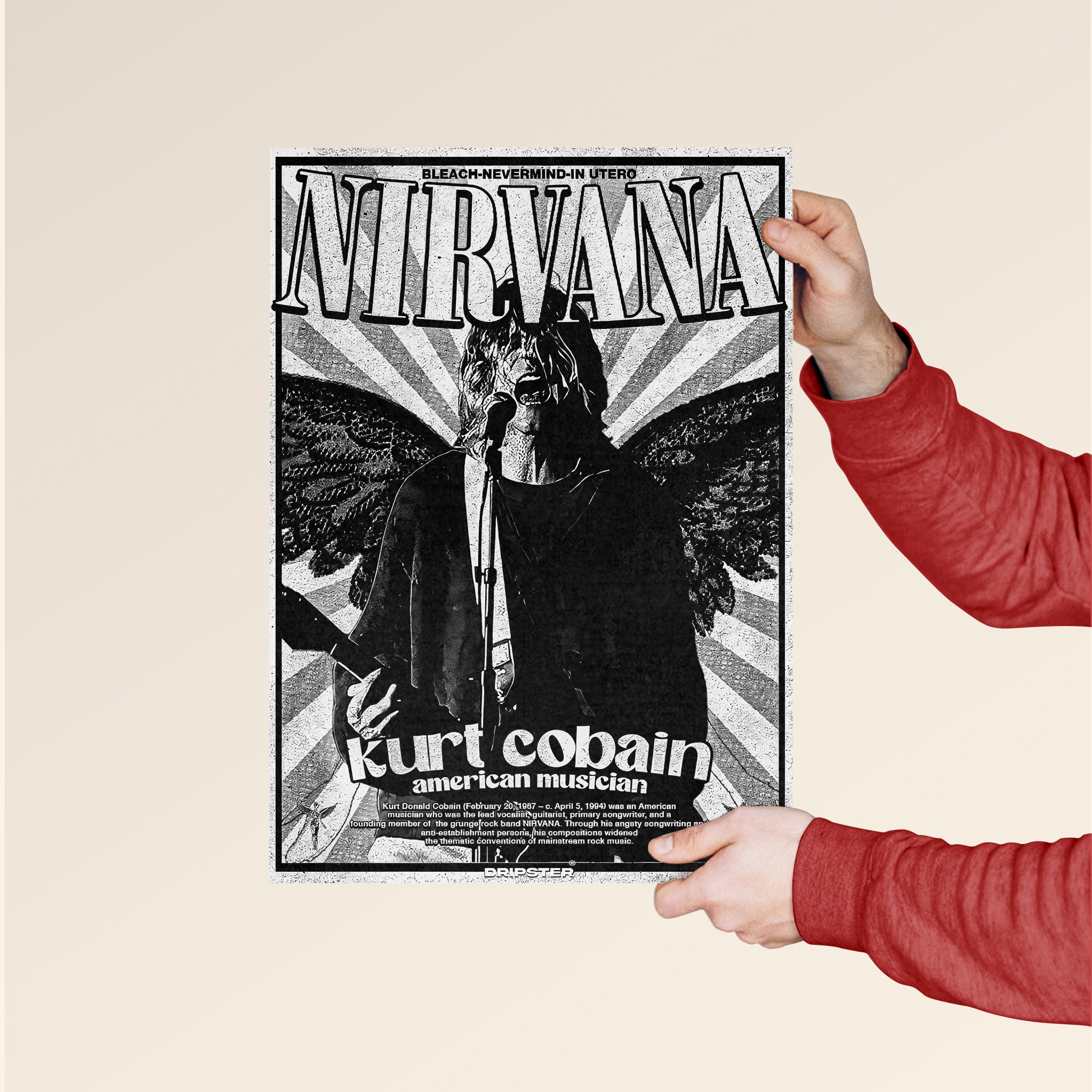 This poster is an absolute must-have for devout Nirvana fans, grunge music enthusiasts, and collectors of unique rock memorabilia. It serves as a powerful statement piece, perfect for anyone looking to infuse their environment with a dose of authentic music history and rebellious spirit.