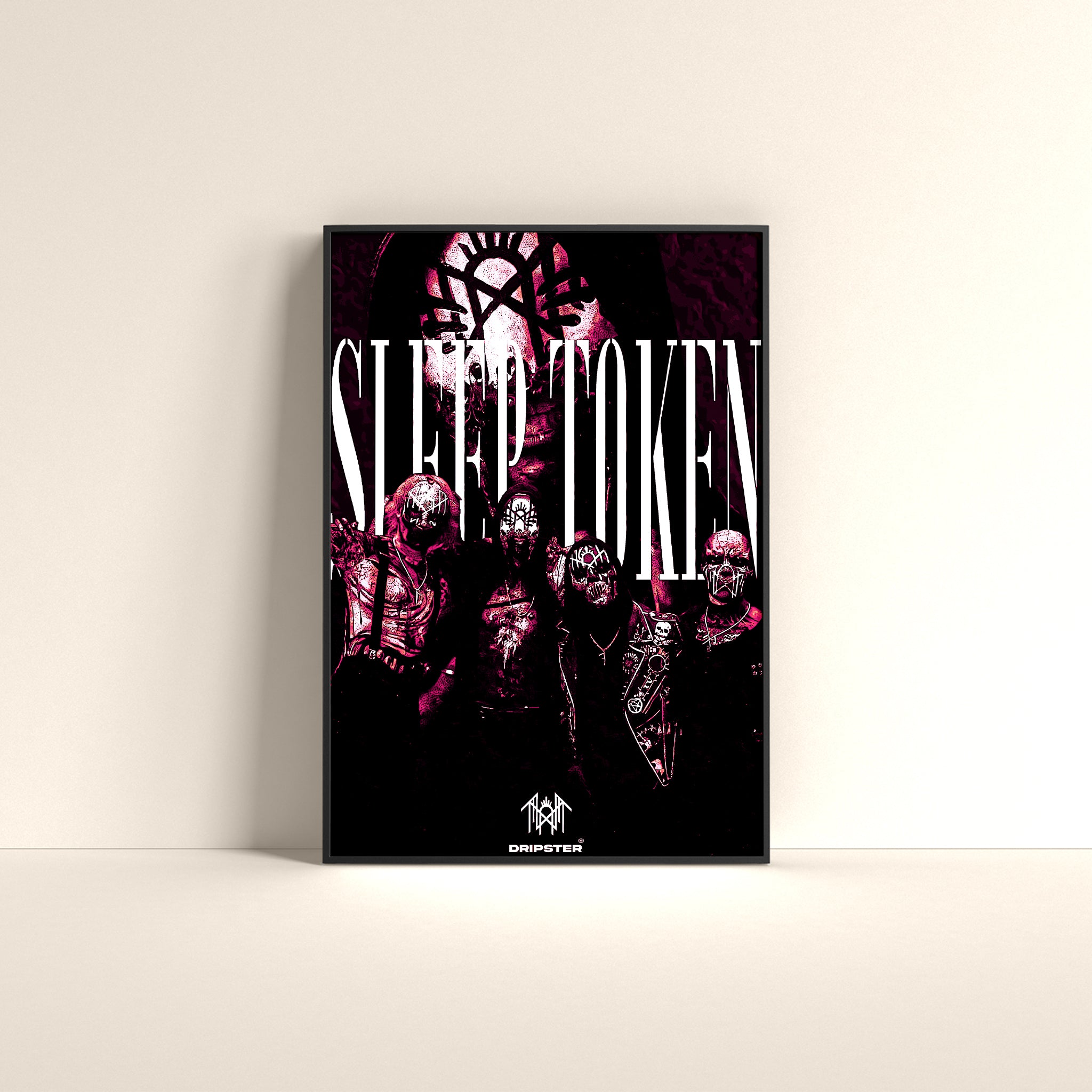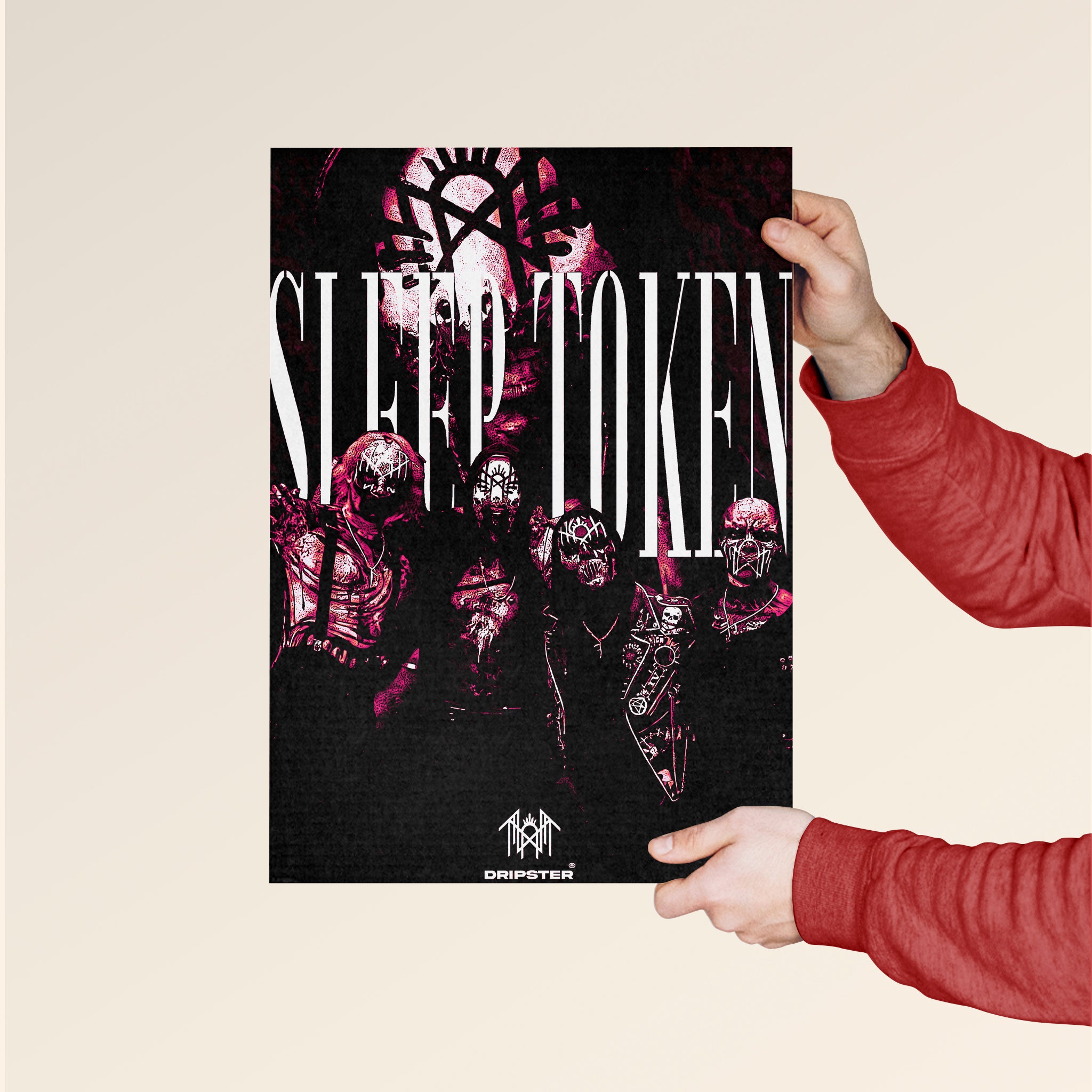 Immerse yourself in the enigmatic world of Sleep Token with this striking poster. Featuring the band's iconic masked figures in a bold, high-contrast graphic style with vibrant pink accents, this artwork captures the atmospheric intensity of their music and visual identity. Printed on high-quality material, it ensures the dark details and stark contrasts pop, making it a compelling piece for any fan's collection or decor.