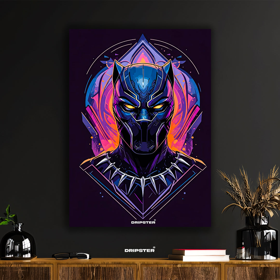 Capture the power and mystique of Wakanda's protector with this stunning art print featuring Black Panther. Rendered in a vibrant geometric style with striking lines and a dynamic color palette of blues, purples, and oranges, this piece brings a modern and energetic take on the iconic superhero.